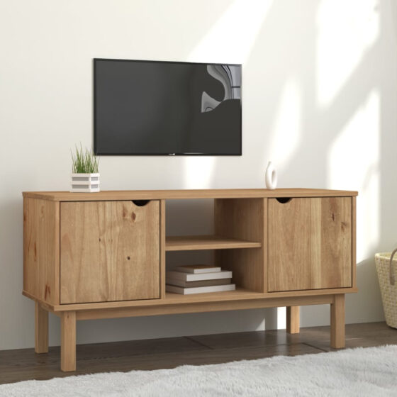 Introducing the Furniture in Fashion Harrow Wooden TV Stand, a sleek and functional addition to your entertainment space. Featuring two doors for concealed storage, this TV stand offers both style and practicality. Crafted with precision and elegance, it boasts a rich brown finish that complements any decor seamlessly. Whether in the living room or bedroom, this TV stand enhances your viewing experience while keeping clutter at bay. Say goodbye to tangled cords and hello to organized living with this versatile piece. Elevate your entertainment area with the Furniture in Fashion Harrow Wooden TV Stand, where modern design meets efficient storage effortlessly. FEATURES : Material : Solid Pinewood, Engineered Wood Finish : Brown This trendy wooden TV Stand features a Scandinavian design and is meant to be a decorative as well as practical addition to your current room decor Solid pine wood : Solid pine wood is a beautiful natural material Pine wood has a straight grain, and the knots give the material its signature, rustic look Stable frame : The wooden frame ensures sturdiness and stability Ample storage space : The TV unit has 1 shelf and 2 compartments with doors, offering sufficient storage space to keep your essentials well organised and within reach Displaying function : The sturdy top is ideal for displaying potted plants, framed photos and other decorative items This TV Stand fits perfectly in a Scandinavian interior Wooden furniture brings you closer to nature This TV stand has storage space Protect from scratches and stains with regular material care Note : Each product comes with an assembly manual in the box for easy assembly Warning : In order to prevent overturning, this product must be used with the wall attachment device provided Available at an affordable price Images shown are for illustration purpose only DIMENSIONS : Height : 57cm Width : 113. 5cm Depth : 43cm